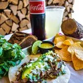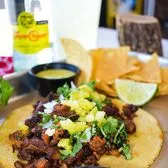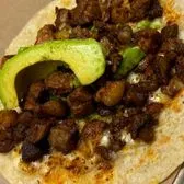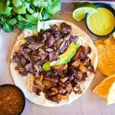 Angus brisket with onions, cilantro and avocado.