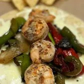 Woodfired shrimp, woodfired mushrooms, onions, bell peppers, cheese and avocado.