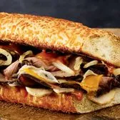 Black angus steak, provolone, cheddar, sautéed mushrooms & onions, zesty grille sauce on rosemary parmesan bread.