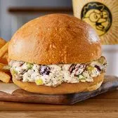 Our NEW Texas Pecan Chicken Salad with dried cranberries and crushed pineapple on an XL Fresh-Baked Yeast Bun