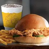 A Big Crispy Marinated Breast Filet, Topped With Our Spicy Lotta Zing® Sauce • 5 Dill Pickles Slices All On An Extra-Large, Freshly Baked Yeast Roll