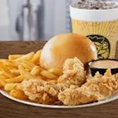Golden ChickSearch4500 Matlock RoadOpen now$3.49delivery feeFeaturedSpecialsApp/Online Exclusive OffersGolden CombosWicked WingsSandwichesKids MealSaladsDessertsSidesExtrasBy The PieceFamily MealsParty PaksDrinksKids Meal2 Tender Kid's Meal2 Golden Tenders® • Single Side Item • Fresh-Baked Roll • Apple Juice Box or 20 oz. Drink$7.79