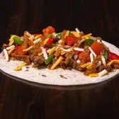 Marinated and grilled steak, grilled onions and peppers, pico de gallo, mixed cheese, roja salsa on a flour tortilla. Contains: milk, soy, wheat.