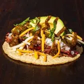 Smoked beef brisket, diced onions, jalapeños, cilantro, avocado, mixed cheese, tomatillo salsa on a corn tortilla. Contains: milk, soy.