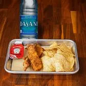 A kid-sized favorite featuring your choice of two crispy Trailer Park chicken tenders or four fried avocado bites. Served with a kids side of tortilla chips, tater tots, or rice & beans, plus a bottled Dasani® water. Contains: Wheat.
