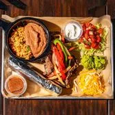 Choice of protein steak, chicken, or both with rice, beans, guacamole, pico de gallo, fajita veggies, mixed cheese, shredded lettuce, sour cream, and a side of roja salsa on corn or flour tortillas. Contains: milk, soy, wheat.