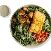 Sustainable salmon, romaine, kale, shaved parmesan, roasted cherry tomato, cucumber, housemade croutons, Caesar dressing 660 cal +170 dressing