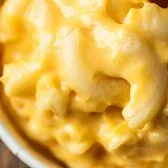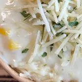 Whole kernel corn in a savory and sweet sauce. Topped with a sprinkle of shredded parmesan cheese and parsley flakes. Made from a family recipe.