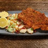 10oz boneless pork chop served with apple cider slaw, warm bacon potato salad + dijonnaise on the side
