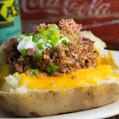Texas sized Baked Potato made w/ Real Bacon, Butter, Fresh-Cut Chives, Cheddar Cheese, and Sour Cream