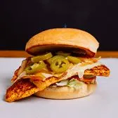 Turn up the heat with our Chicken Jalapeño, a halal-certified delight packed with a spicy punch. Juicy chicken is layered with Swiss cheese, sautéed jalapeños and onions, crisp lettuce, ripe tomato, and tangy pickles, creating a fiery yet balanced flavor profile.