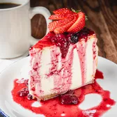 Classic New York Style Cheesecake served with a berry compote
