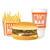 Large Bun (5"), Large Beef Patty (5") (2), American Cheese and Monterey Jack Cheese, Green Chiles Your Whatameal® Includes: Medium Fries and a Medium Drink