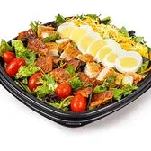 Choice of chicken, hard-boiled egg, shredded cheese, 3 bacon slices, 6 grape tomatoes, grated carrots, and red roma blend.