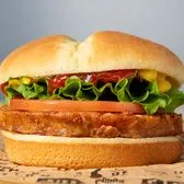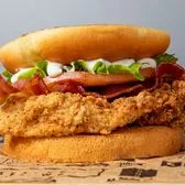 Bacon, lettuce, tomato and mayo topping a crispy chicken breast