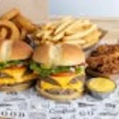 Two Wayback Classics each made with double beef patties, American cheese, lettuce, tomato, pickles, onions, ketchup, and mustard, plus 6 breaded chicken tenders, a large order of French Fries, and an order of Onion Rings. Ketchup, Mayo and Mustard packets included. This bundle serves two adults and two kids. Please note: This bundle is offered as is. No substitutions or customizations can be made using the special instructions.