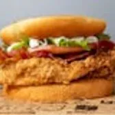 Bacon, lettuce, tomato and mayo topping a crispy chicken breast