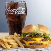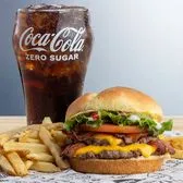 Classic Burger (two beef patties, American cheese, lettuce, tomato, pickles, onions, mustard, and Heinz® ketchup) served with a regular size French Fry, and a 22oz Coca-Cola® Beverage of your choice.