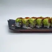 California roll topped with avocado tuna, salmon, hamachi, & white tuna. Consuming raw or undercooked meats, poultry, seafood, shellfish, eggs, or unpasteurized milk may increase your risk of foodborne illness