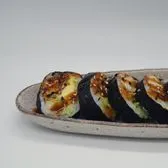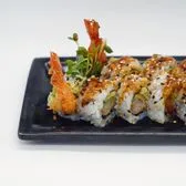 Panko crusted shrimp, avocado, cucumber, eel sauce, sprouts