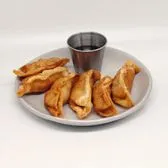 Open faced dumplings filled with chicken, beef, & vegetables, served over a spicy garlic chili oil that will knock your socks off!