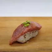 Heavily marbled Japanese Miyazaki beef sushi, lightly seared and dressed with ponzu and green onion