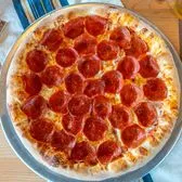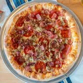 Red sauce base, pepperoni, sage sausage, ground beef, pit smoked ham, and bacon.