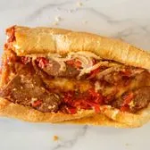 Meatballs ( Beef and Pork), house marinara, onions, hot pepper relish, provolone, parmesan, oregano; oven toasted.