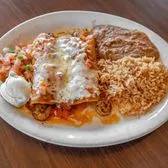 Two enchiladas with your choice of ground beef or shredded chicken, and finished off with your choice of sauce.