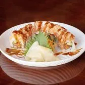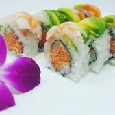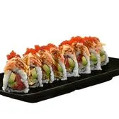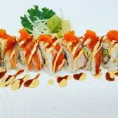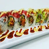 Spicy tuna, shrimp tempura, avocado topped with spicy crab, eel sauce and tobiko
