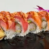 Spicy salmon, avocado, topped with fresh salmon, spicy crab, spicy mayo & eel sauce