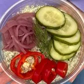 Parsley | Cauliflower | Mint | Cucumber | Tomato | Scallion | EVOO | Lemon | Hemp Seed | Ground Flax Seed | Lemon Zest | Garlic | Red Pepper Flake | Sea Salt