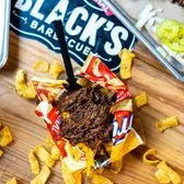 Tasty Frito Lay corn chips smothered in cheddar cheese and Norma Jeans Pinto beans topped off with your choice of Meat that doesn't have bone!