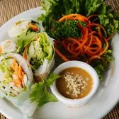 Lettuce, carrots, cucumber, bean sprouts, and choice of protein wrapped in rice paper. Served with peanut dressing. Shrimp, chicken, tofu, and vegetarian options available. (2)