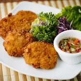 Sweet corn, cilantro, and garlic, deep-fried and served with cucumber sauce. (4)