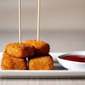 6 Pieces of breaded mozzarella with tomato sauce.