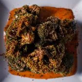 Deep-fried broccoli crowns tossed with shichimi and served with smokey and sweet mayo.