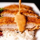 Pork tenderloin deep fried and served with gohan or fried rice, coleslaw salad, green onion, and our smokey and sweet mayo.