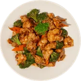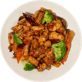 Spicy and Simple, yet bold flavors of the Hunan province. Chicken stir-fried in a spicy brown sauce w/ broccoli, carrots, baby corn, mushrooms, and onions.