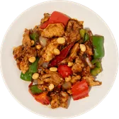 Everybody was Kung-Pao fighting! Chicken stir fried in a brown sauce w/ red & green bell peppers, onions, and peanuts.