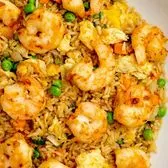 Shrimp stir fried w/ rice, Vital Farms eggs, peas, carrots, onions, green onions