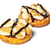 2 protein waffles (whey protein) topped with banana, peanut butter, chocolate cashew drizzle. 290 cal. Select "No Protein" modification for non-dairy waffles.