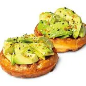 2 protein waffles (whey protein), avocado, everything bagel seasoning. 220 cal. Select "No Protein" modification for non-dairy waffles.