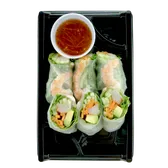 Cooked roll. All natural shrimp, cucumber, shredded carrot, lettuce, avocado, and imitation crab. Fully cooked, rolled in a rice wrapper. Served with sweet chili sauce.