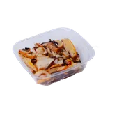 Calamari salad with seasoned boiled squid and tender bamboo shoot. Mixed with mushrooms, spicy red pepper flakes, ginger. Enjoy by itself or serve alongside any sushi roll!