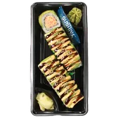 Named the “Rio Grande” and freshly made in store, this H-E-B Sushiya sushi roll is packed with the coolness of cream cheese, imitation crab and avocado. Bringing the heat on top of the sushi rice are spicy crunchies, spicy mayo and sushi sauce. Take a big bite and garnish yours with the included wasabi, ginger and soy sauce.