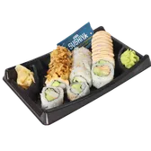 Cooked roll. A classic combo pack with five pieces of California roll, five pieces of spicy California roll, five pieces of crunchy California roll. Served alongside traditional wasabi, pickled ginger, and soy sauce.