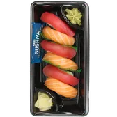 Freshly made in store, this H-E-B Sushiya nigiri sushi selection features sustainably sourced Atlantic salmon that’s firmly pressed onto mounds of sticky sushi rice. Although you can use chopsticks, nigiri is typically eaten by hand upside down, with the rice facing upwards and the fish against your tongue. Dip the salmon into the included soy sauce and enjoy the fresh taste. Also comes with ginger and wasabi.