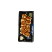 It’s freshly made in store with tempura-style shrimp, imitation crabmeat and avocado, all rolled in sushi rice. For the finishing touch, there’s squiggles of spicy mayo and sushi sauce, plus a generous sprinkling of fried onion flakes. Yum! Includes wasabi, ginger and soy sauce.