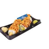 Cooked roll. A crunchy twist on the classic California roll, rolled with imitation crab, cucumber, avocado and topped with onion flakes. Served alongside traditional wasabi, pickled ginger, and soy sauce.